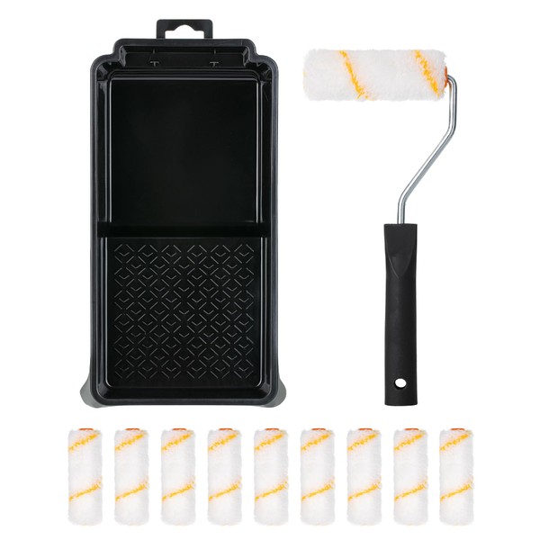 Bates- 4 Inch Paint Roller Kit, 11 pcs, Small Paint Roller Kit, 1x Plastic Paint Tray, 1x Roller Frame & 9X Microfiber Covers