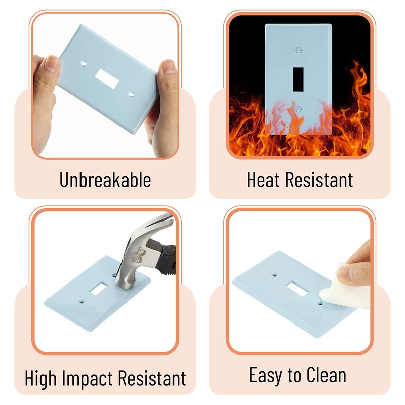 - Bates 1 toggle light switch cover is made of unbreakable polycarbonate thermoplastic; this wall plate can withstand hard impacts and heavy force. It's also flexible and will not break or crack easily.