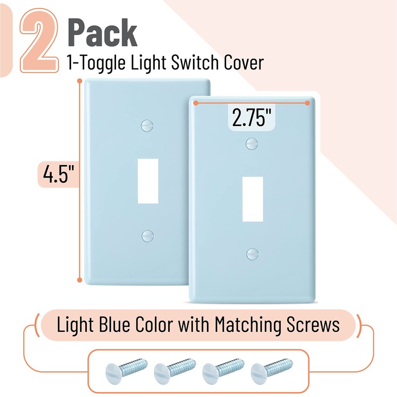 - Package includes 2 pcs of 1 toggle light switch covers and 4 matching screws. The blue color is perfect for kids' and nursery rooms.