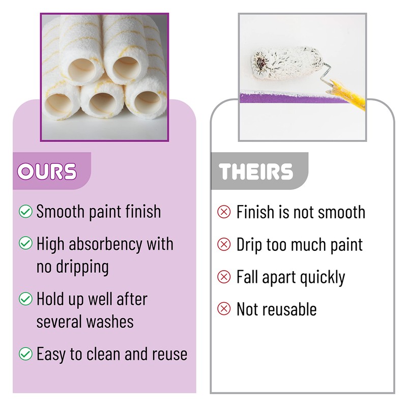 - The microfiber fabric delivers a smooth, lint-free finish, making these roller covers an excellent choice for both DIY home renovations and professional painting jobs.