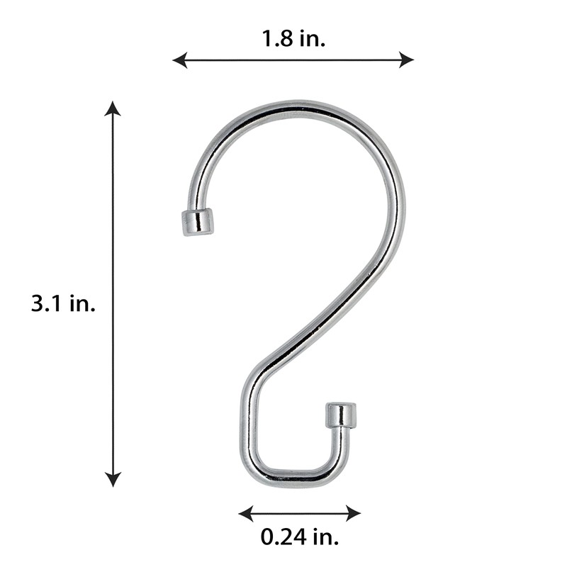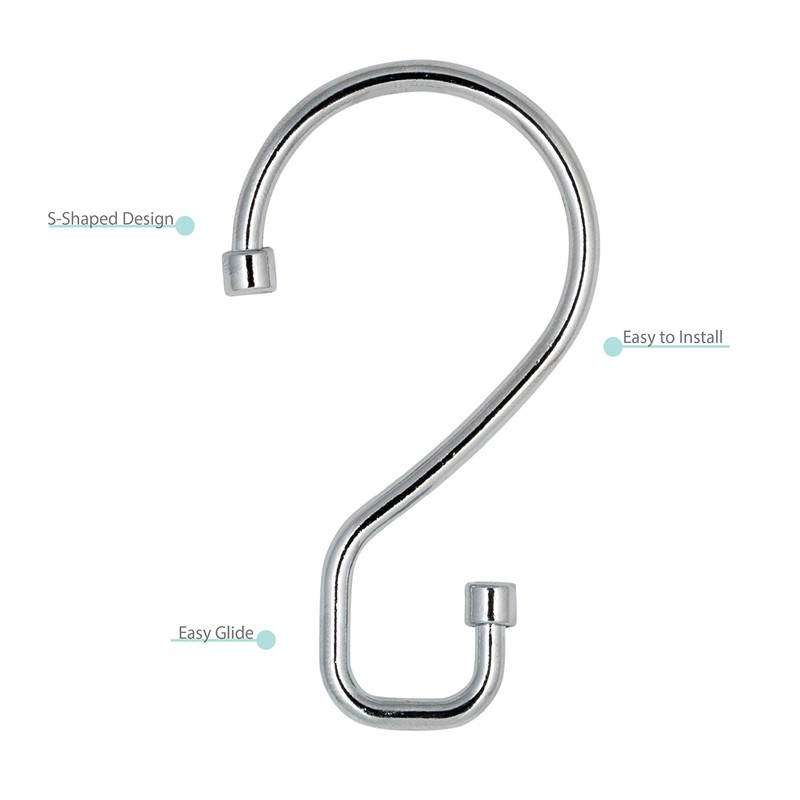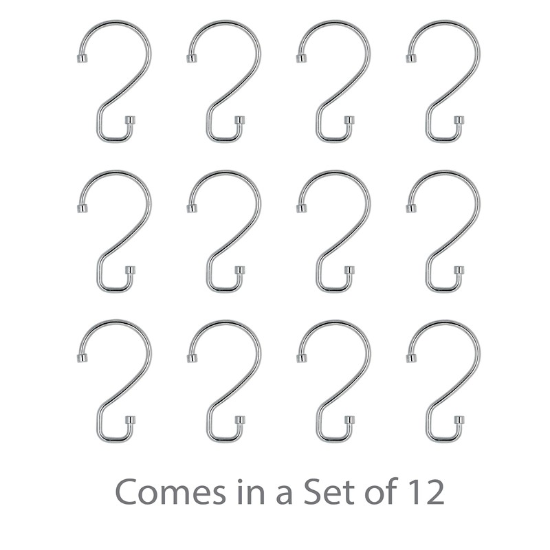 Bath Bliss Chrome 12 Pack S-Hook Shower Curtain Rings