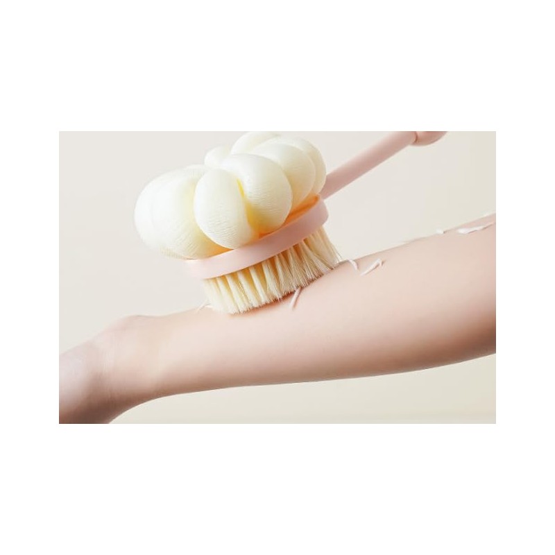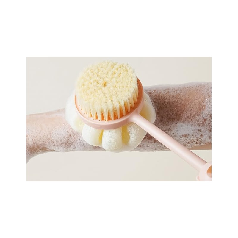 - ★Use Any One Side You Like,Lather Up Well and Do a Gentler Clean,which will help Stimulate your Blood Circulation, help with Lymphatic Drainage and Scrub Away that Dirt and those Dead Skin Cells. And the Long Handle that Allow you to Reach Just about Anywhere.