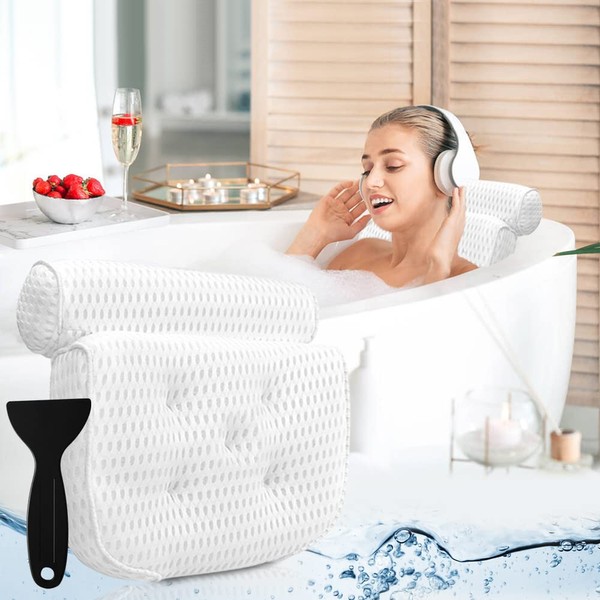 Bath Pillow Bathtub Pillow - Bath Pillows for Tub with Neck, Head, Shoulder and Back Support - 4D Air Mesh Spa Pillow for Bath - Extra Thick, Soft and Quick Dry