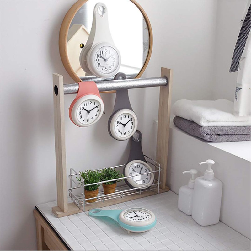Bathroom Clock, Waterproof Clock, Wall Clock, with Suction Clock, Waterproof, Silent, For Bathroom, Kitchen, Bath, Home, Stylish (White)