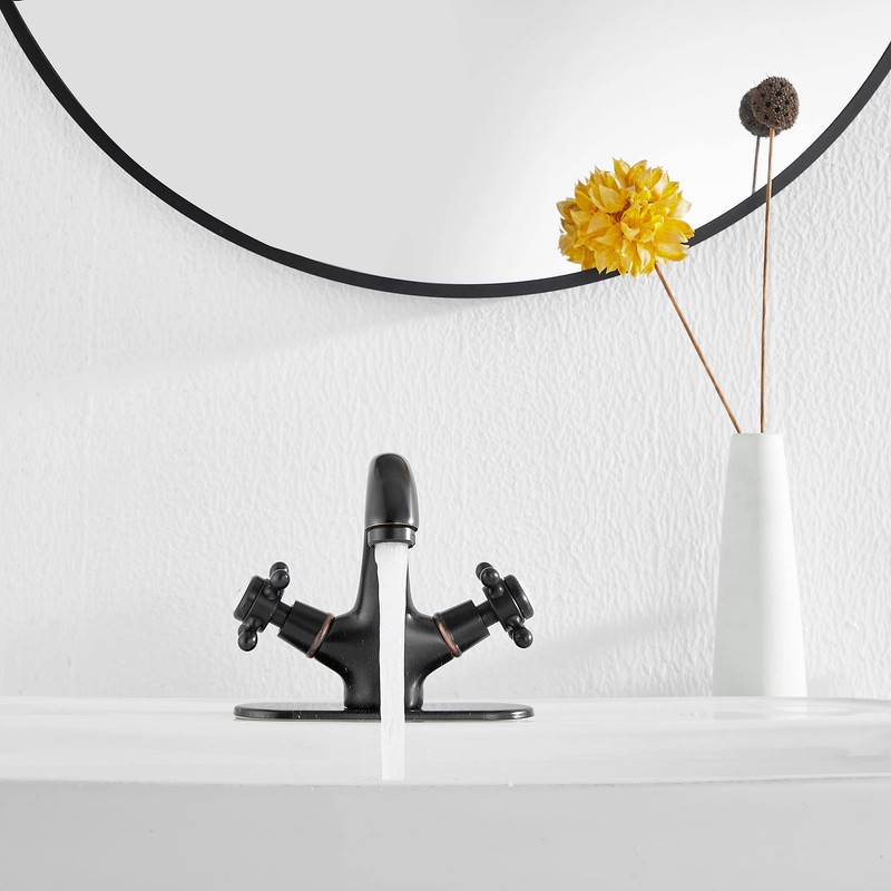 Bathroom Faucet Oil Rubbed Bronze GGStudy Bathroom Vanity Faucet Single Handle One Hole Bathroom Sink Faucet Basin with Cover Plate