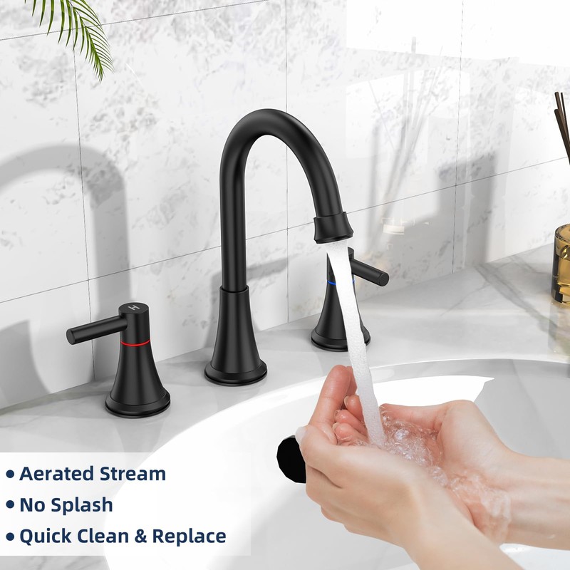 - Water saving:Bathroom sink faucets featured 1.2 gpm no-splashing water-saving bathroom sink faucet aerators, also come with a no flow replaceable bathroom faucet aerator for higher flow.More choices, enjoy more fun