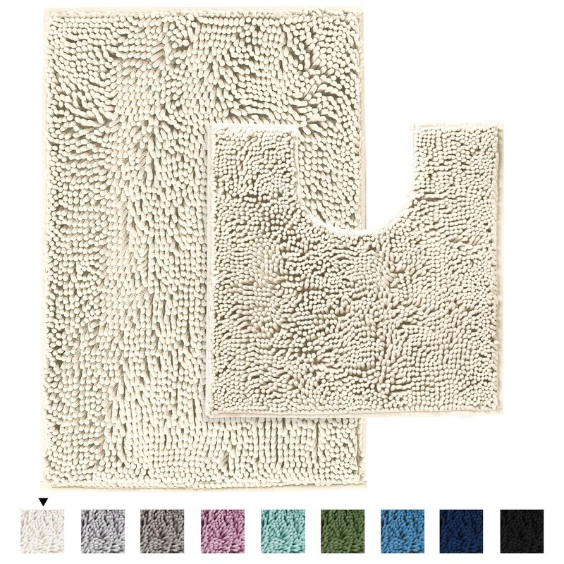 Bathroom Rugs Luxury Chenille Mat Set, Soft Plush Shower Rug + Toilet Mat, Mi...