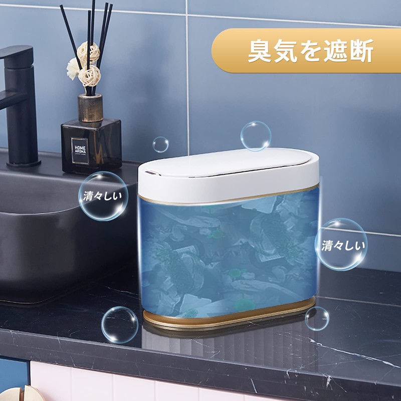 Bathroom Trash Can with Lid ELPHECO Waterproof Automatic Trash Can Smart Trash Can Small Trash Can for Bedroom, Bathroom, Kitchen, Office, Gold (5L Gold)