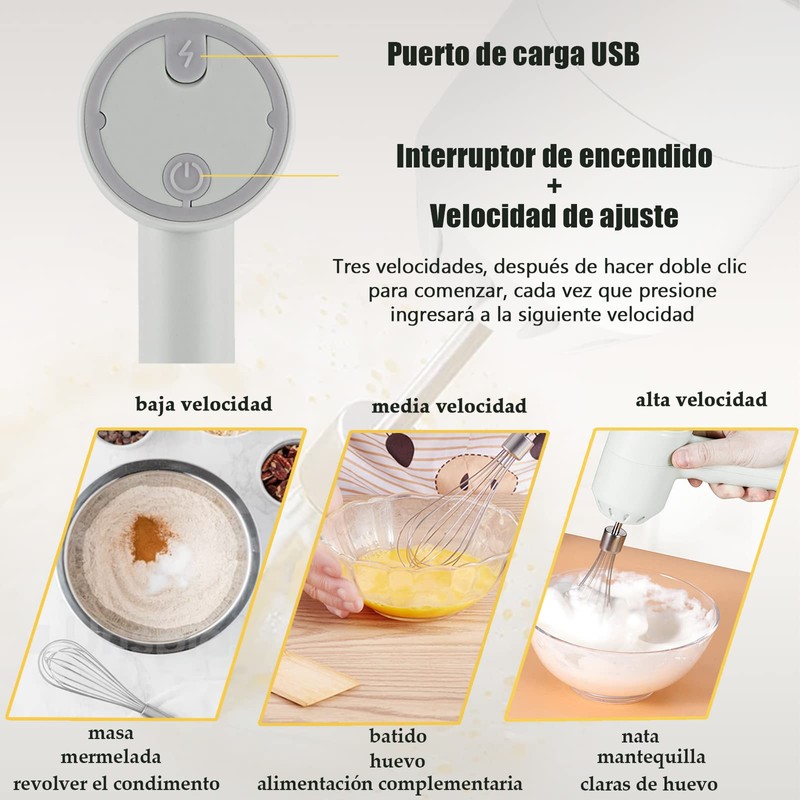Batidora de mano 2 en 1,batidora de huevos eléctrica con tres velocidades ajustables,picadora de ajo,batidora multiusos,mini Trituradora de Alimentos,batidora manual electrica recargable momento.