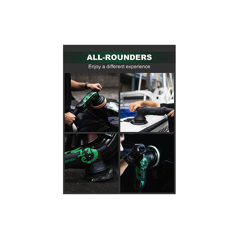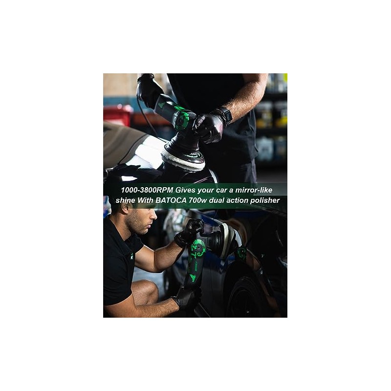 - Diseño único y ergonómico: El equipo de diseño profesional de BATOCA se dedica a crear algo nuevo y diferente. Un camaleón verde rodea el cuerpo de nuestra pulidora BATOCA de DA. Es sin precedentes genial y ayuda a hacer que tu automóvil esté fresco y brillante. Cómodo agarre frontal, mango curvado con sentido del cuerpo que reduce la fatiga y permite un manejo más preciso.