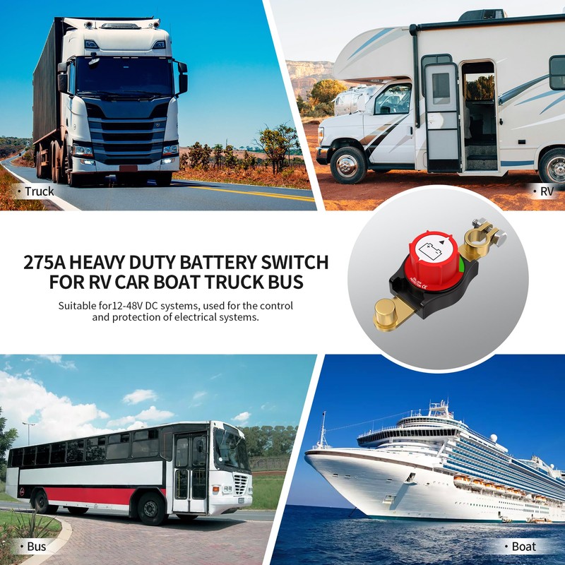 - Widely Used: Our heavy duty battery disconnect switch is basic size and fit for most kinds of battery post, which help to cut off battery power consumption when vehicles or boats are not in use for long term, is widely applicable for cars, RVs, boats, and other vehicles