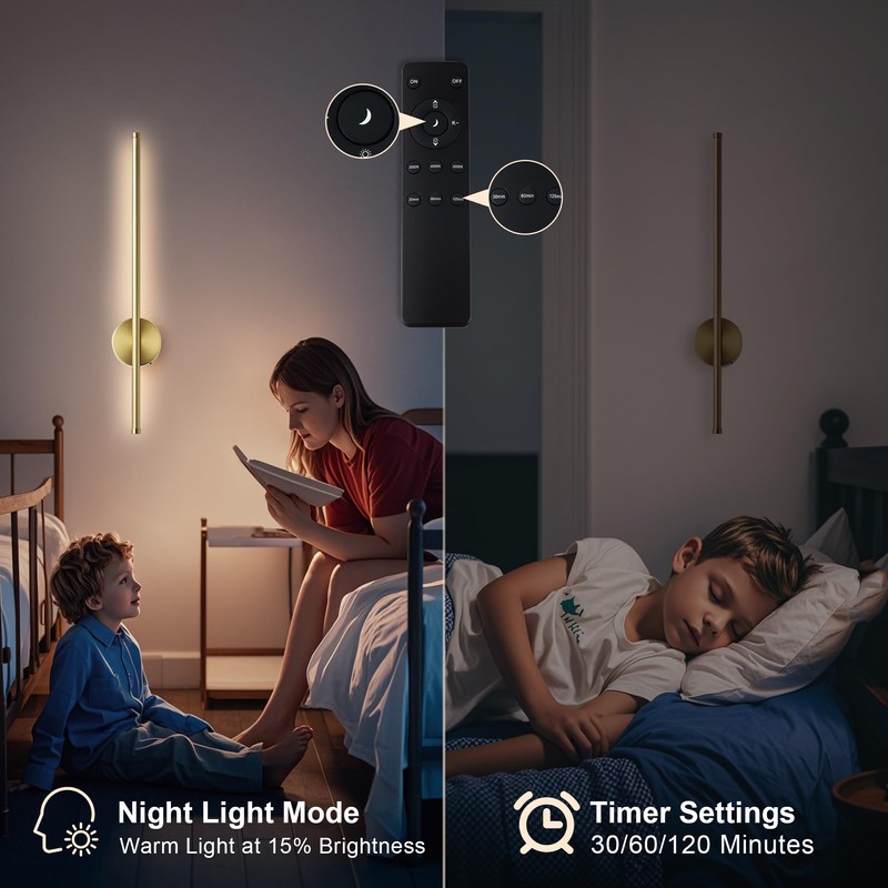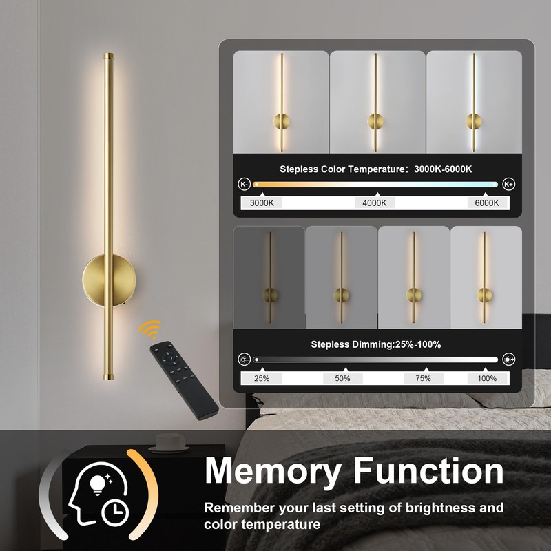 - CONTROL AT YOUR FINGERTIPS: This battery operated modern wall sconce equipepd with a remote control to easily change the setting without getting up. You can also manually touching the light button to directly control the color temperature and brightness