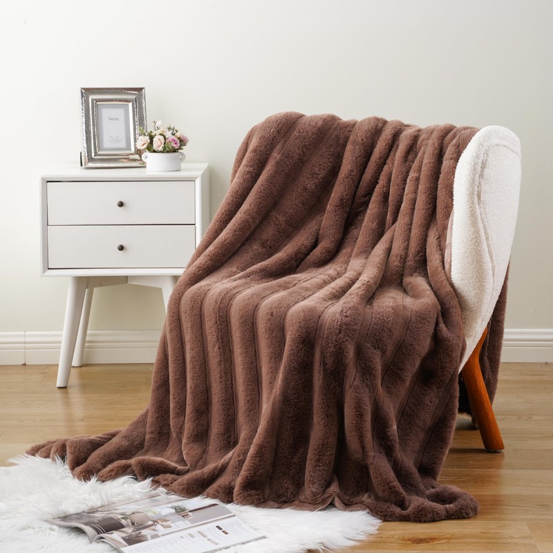 Battilo Brown Faux Fur Throw Blanket, Rabbit Fur Blanket for Bed, Couch, Supe...
