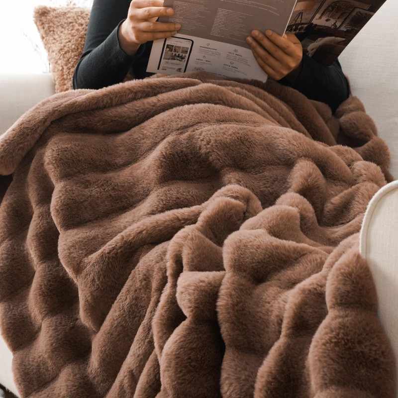 • BLANKET SIZE: The rabbit fur blanket has a double-layer design of 280gsm faux rabbit fur and 180gsm imitation super velvet. Available in 50"x60" and 60"x80" options. This comfortable sizes accommodates individuals, couples, and families while relaxing indoors or outdoors