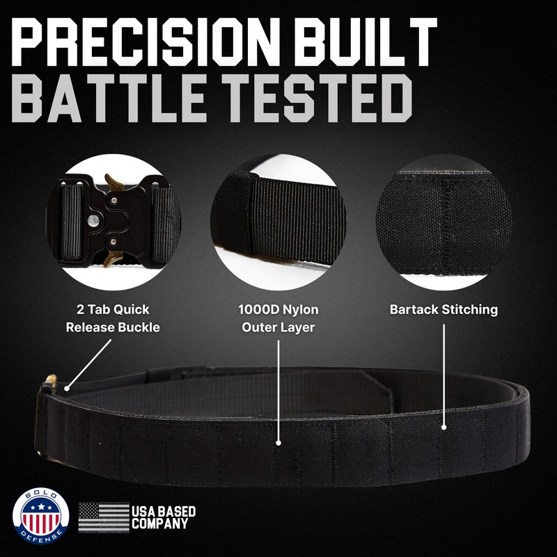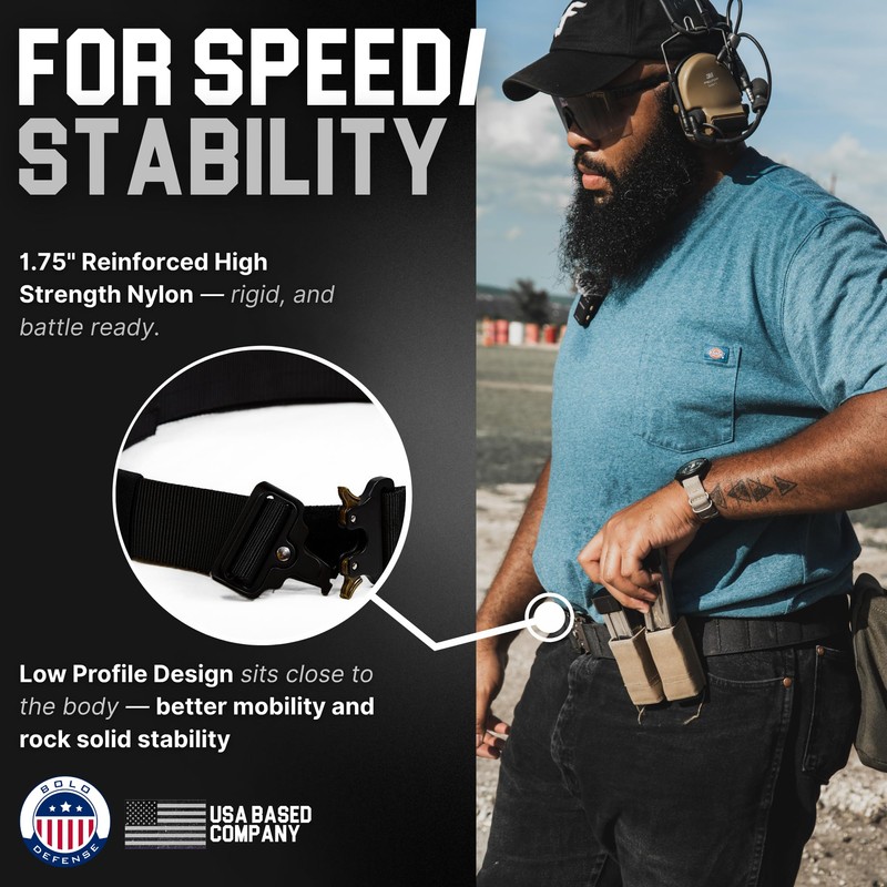 - 1.75" Reinforced Nylon with Quick Release Buckle Constructed from high-strength nylon, this nylon duty belt features a rigid 1.75” profile, a heavy-duty quick release buckle, and laser-cut MOLLE—perfect for a molle duty belt, war belt, or competition belt USPSA setup