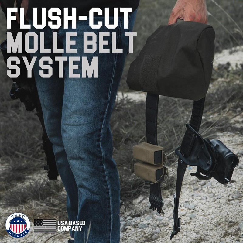 - Our flush-cut MOLLE belt system lies completely flat against your gear—no loops, no snags. Unlike standard battle belts, the Huckleberry stays smooth against clothing, vehicle seats, and kit, making it ideal as a range belt, tactical utility belt, or shooting belt