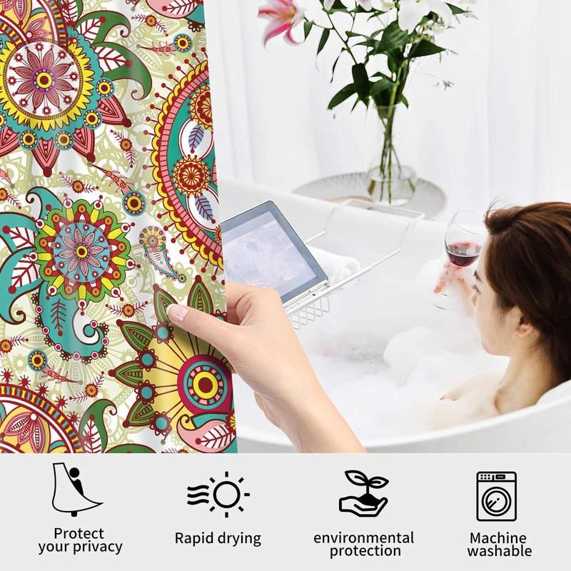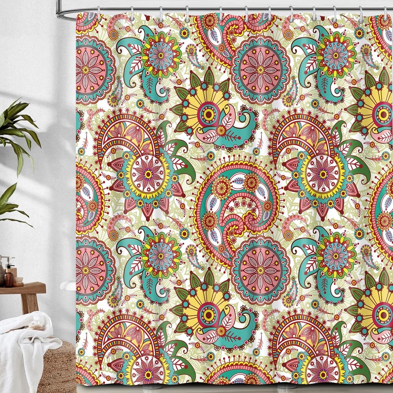 BAUCIWLD Shower Curtain for Bathroom, Cute Shower Curtain Sets with 12 Hooks, Waterproof Fabric Bath Curtain for Home, 72Wx72H Luxury Boho Paisley