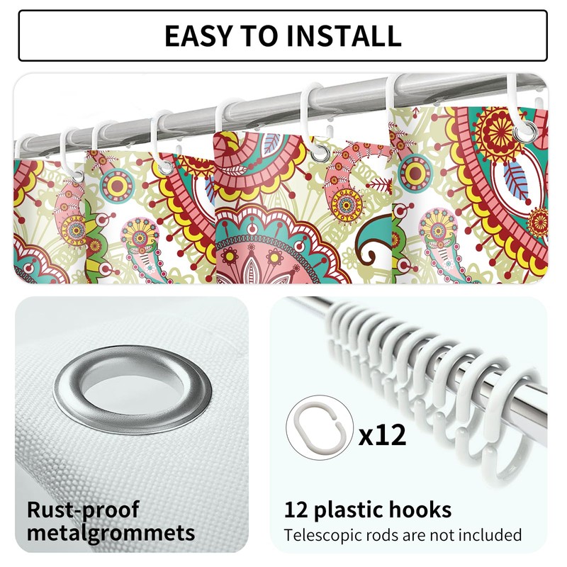 - Easy to Install: Comes with 12 hooks for quick and effortless installation. Simply hang it on any standard shower curtain rod. No additional tools required, making it perfect for immediate use in bathroom setups.