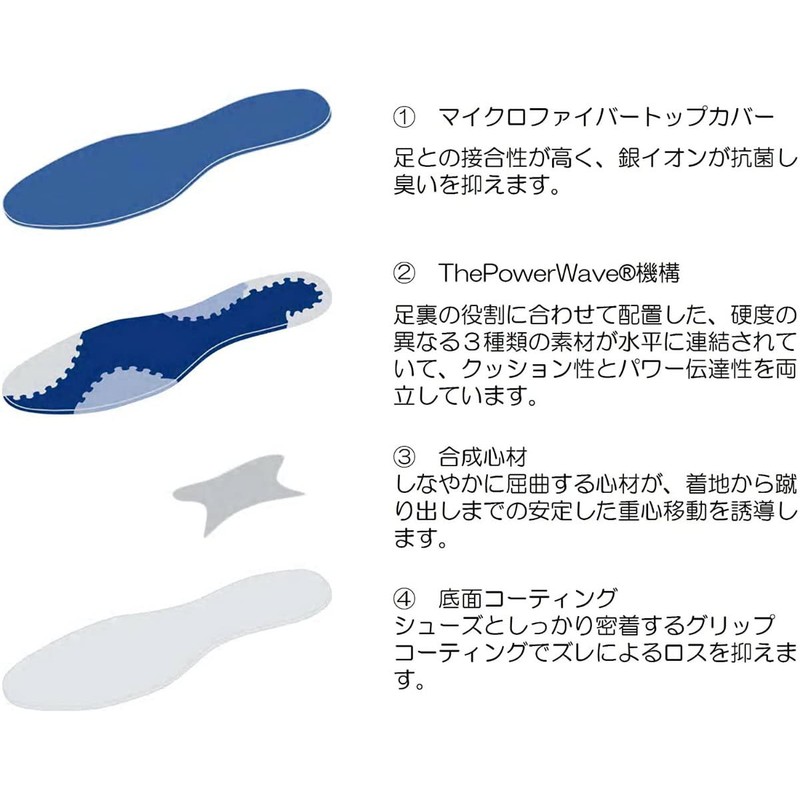 - メタパッド:4㎜のメタパッドを採用。横アーチも支え、足の指にかかる負担を軽減、さらに動きが活性化。