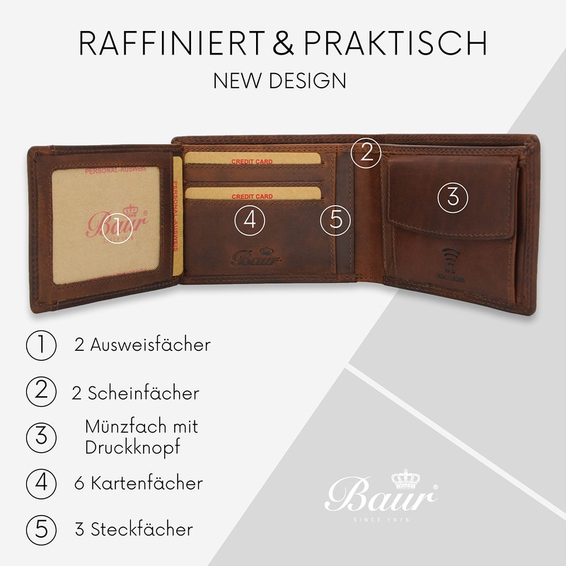 - ✅ GIFT IDEA: Baur men's wallets are suitable as a suitable gift for men, father, brother, boyfriend, partner on birthday, or Christmas as a Christmas gift. Elegant gift box included.