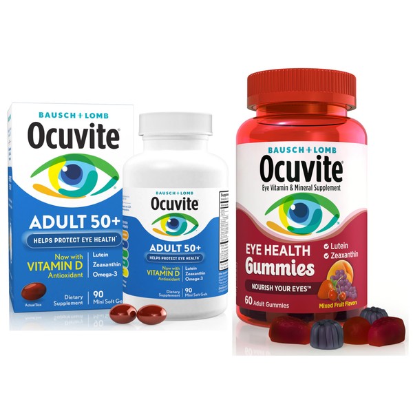 Bausch + Lomb Ocuvite Household Eye Health Bundle – 90ct Softgels for 50+ Adults & 60ct Gummies for The Rest of The Family – Daily Eye Nutrition in Two Trusted Formats