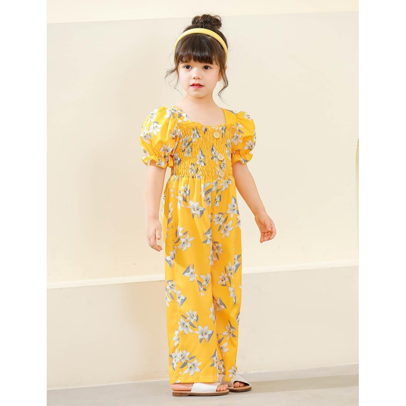 BAVADER Girls Romper Size 8-10 One Piece Girls' Jumpsuits & Rompers Short Sleeve Girl Jumpsuit Ruffle Rompers for Girl Smocked Casual Jumpsuit Clothes Flower Print