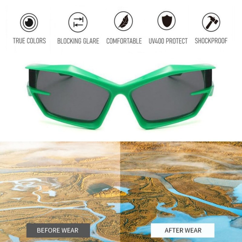 - For Indoor & Outdoor Activities: Y2K alien sunglasses protect you from wind, dust, droplets, etc during kinds of activities including cycling, running, fishing, climbing, hiking, etc, perfect for driving, bike, cricket, baseball, golf, tennis, riding or motorcycle
