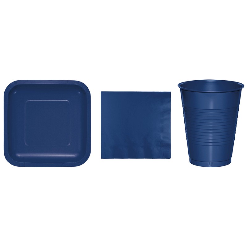 Baxters Party Bundles Bulk, Navy Blue, 36 Count 7 Inch Paper Plates, 40 Count 16 Ounce Plastic Cups, 50 Count Luncheon Paper Napkins, Pack Contains 126 Pieces Made in The USA