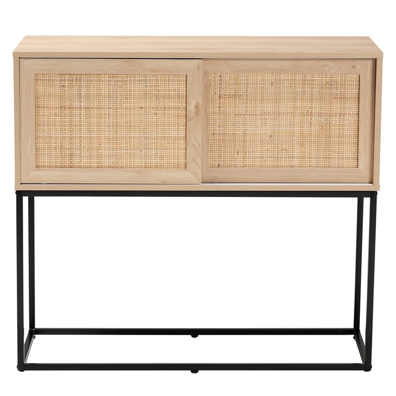 - Baxton Studio Amelia Mid-Century Modern Transitional Natural Brown Finished Wood and Natural Rattan Sideboard Buffet