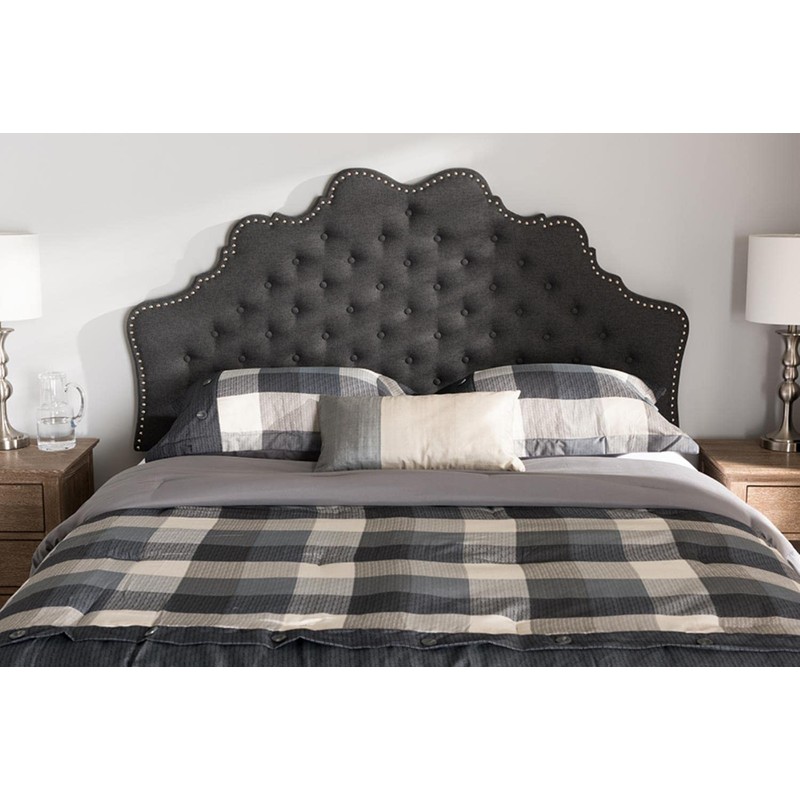 Baxton Studio Hilda Modern and Contemporary Dark Grey Fabric Queen Size Headb...