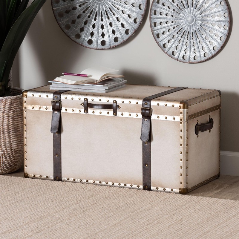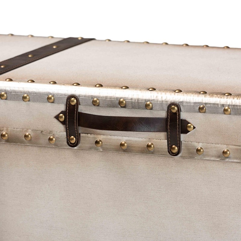 Baxton Studio Nevio Canvas Storage Trunk, Beige/Coffee/Black