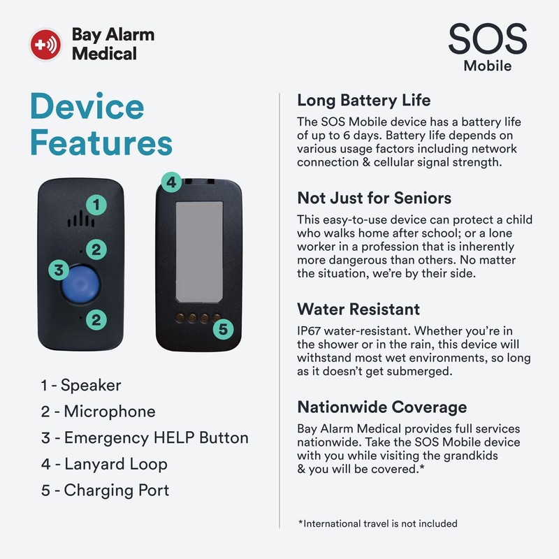 - SMARTPHONE NOT REQUIRED: The SOS Mobile device will come fully equipped. You do not need to connect the device to any network provider or smartphone.