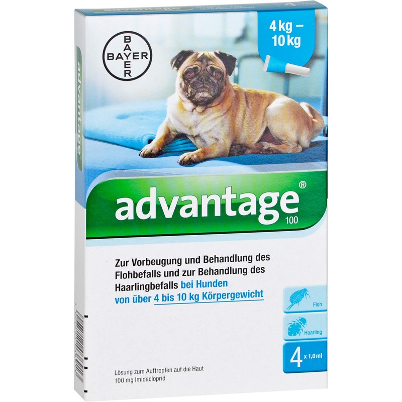 BAYER Advantage 100 Lösung zur Vorbeugung und Behandlung des Flohbefalls und zur Behandlung des Haarlingbefalls, 4 pcs. Pipettes
