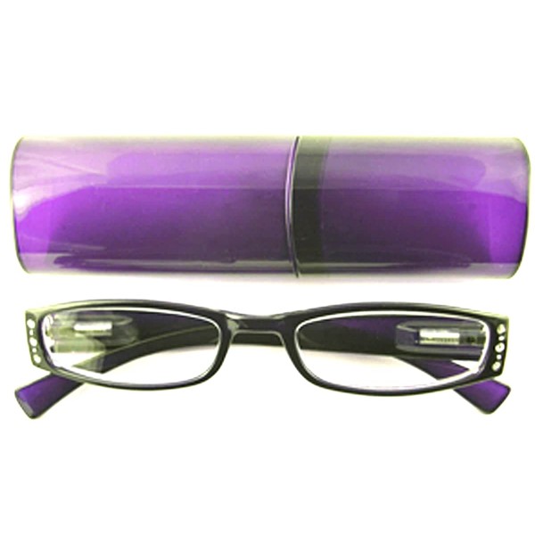 [Bayline] ベイライン リーディンググラス(老眼鏡) ラインストーンスクエア系クリアカラー208D(パープル, 1.5)/プラスチックケース