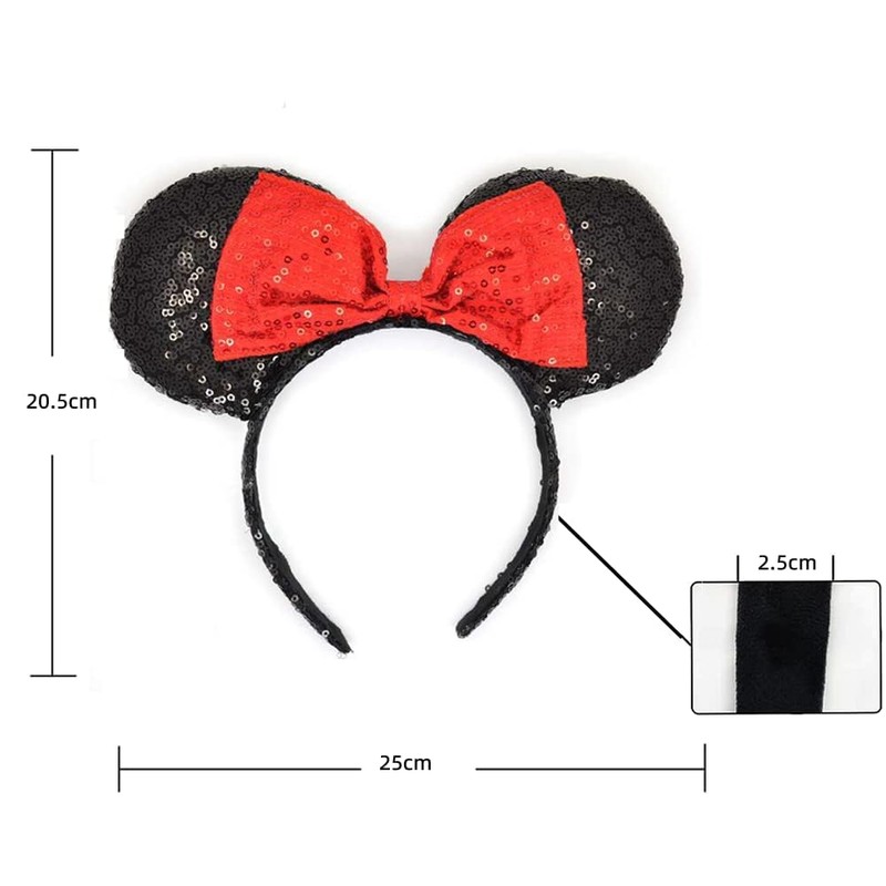 - 【Hecho a Mano, Calidad Superior】 Todas nuestras diademas de orejas de ratón están cosidas a mano con puntadas finas e incluso lentejuelas que no se descascarillan. Los lazos brillantes tienen una forma más grande y no se deforman. El diseño más ancho de la diadema es firme, estable y flexible, y no se despegará fácilmente.