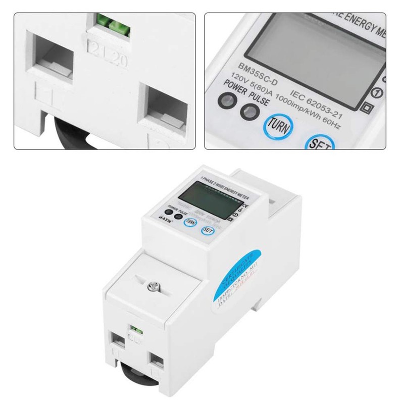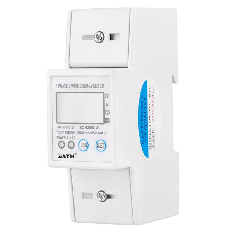 BAYM® 5(80) A 120V 60HZ Single Phase Din Rail Digital Modbus Smart Remote KWH Watt Hour Din-Rail Energy Multi-Function Meter LCD with Button 80A