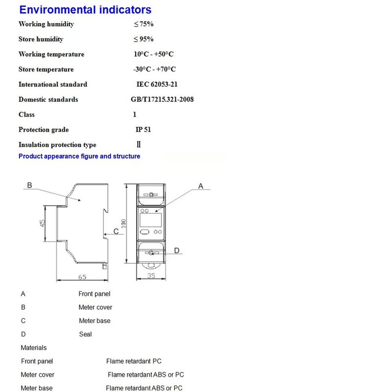 • Package included: 1pc DIN-Rail Electric Meter, 1pc of User manual (English version)