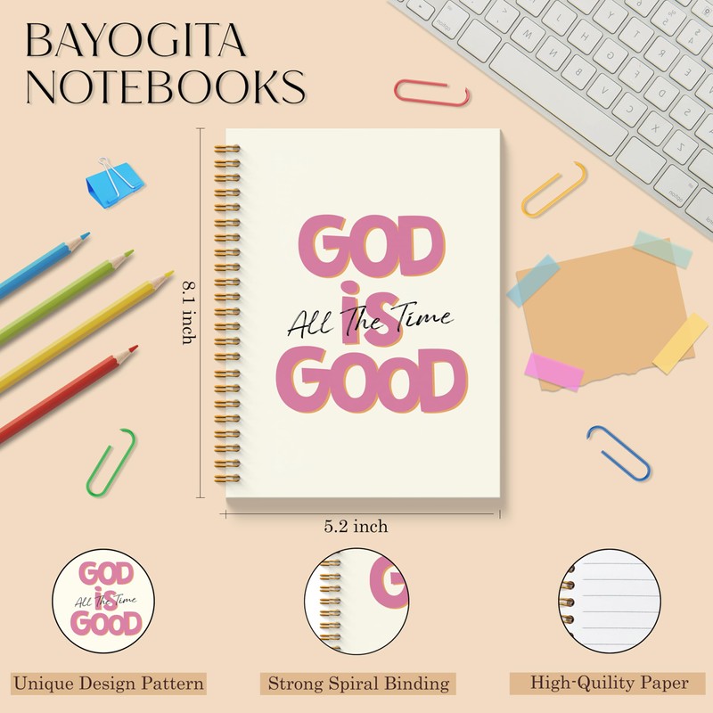 BAYOGITA Trendy Pink Christian Spiral Notebooks, God is Good Bible Journaling Notebook, Religious Prayer Journal for Woman, Church Notes Notebook, Christian Gifts for Women, 5.5x8.3 Inches