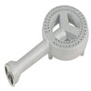 This replacement burner fits Bayou Classic gas cooking stoves that have square frames (the BG10 burner fits stoves with round frames). Made of heavy cast iron, the low-pressure burner features two rings of flame that burn at 50,000 BTUs, the ideal strength for deep-frying or cooking smaller portions. A disc on the end held by two screws rotates to modify the amount of air taken into the burner. The circular part of the replacement burner measures 5-1/2 inches in diameter, while the overall length is 11 inches. Assembly instructions are included. _\--Ann Bieri_