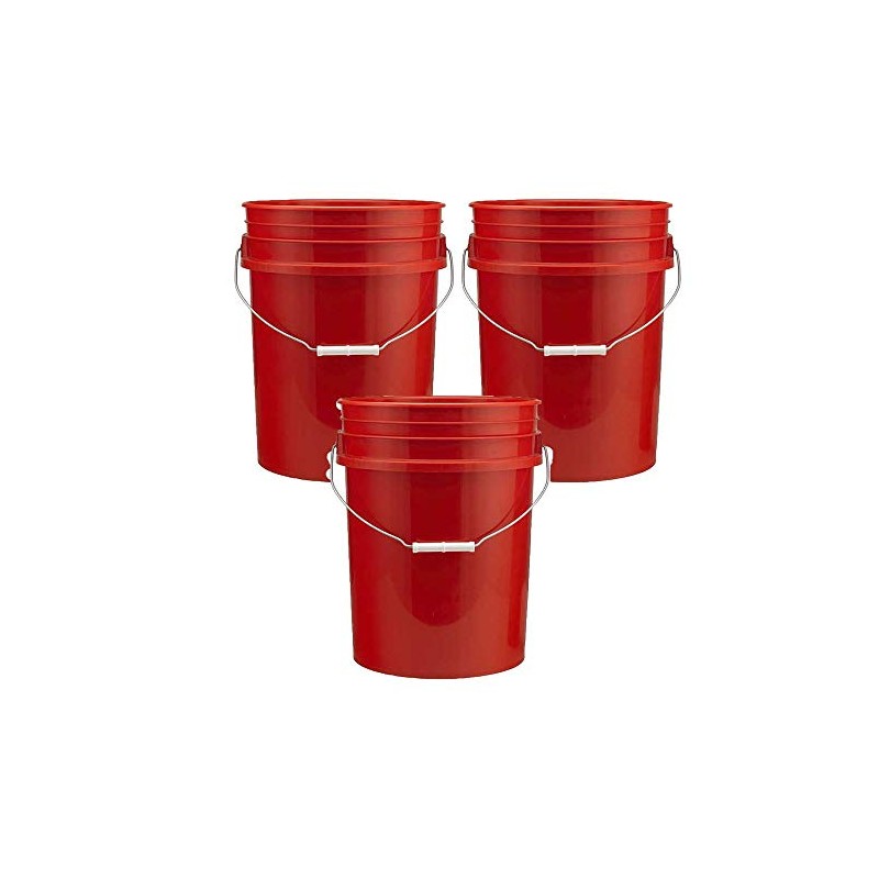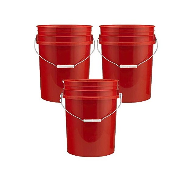 BayTec Containers 5 Gallon (20L) Plastic Buckets, 3-Pack -Red