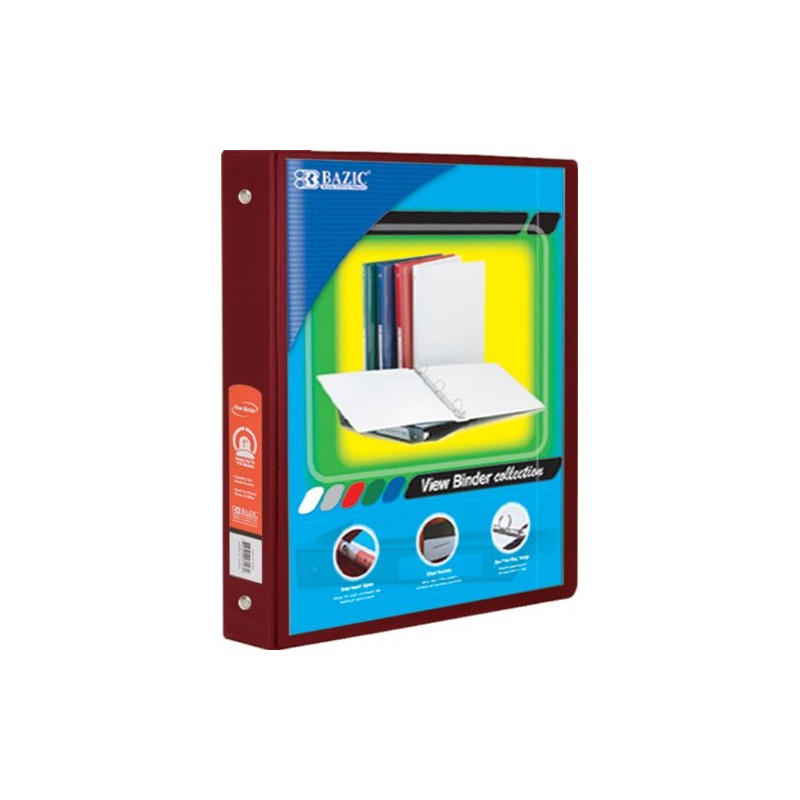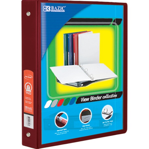 BAZIC 1.5-Inch 3-Ring View Binder with 2-Pockets, Burgundy