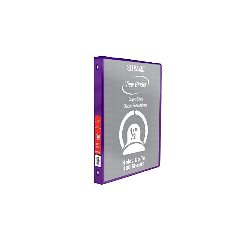 BAZIC 3 Ring Binder 1/2" Economy View Binders Organizer - Purple, Round Ring, Hold 100 Sheets Paper, for School Office Home, 12-Count