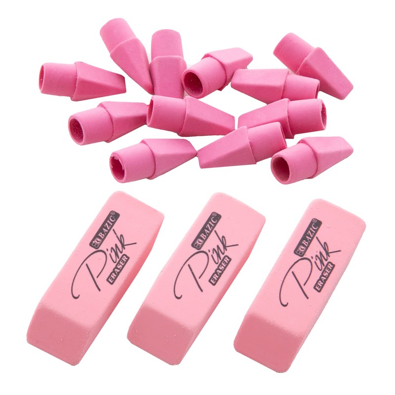 BAZIC - Juego de borradores rosados + borradores de lápiz (15 unidades), borradores de bloque, tapas de punta de flecha, sin látex, para la escuela de dibujo artístico, 2 paquetes