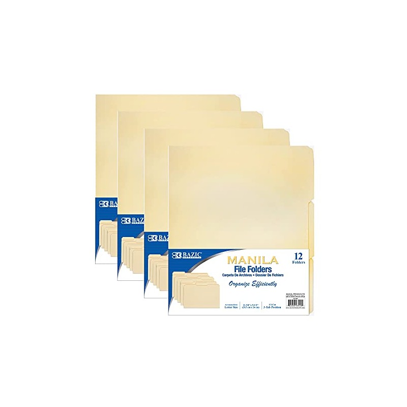 BAZIC Manila File Folder 1/3 Cut Letter Size, Left Right Center Tabs Positions, for Organizing Filing Document Storage, Total 48-Count