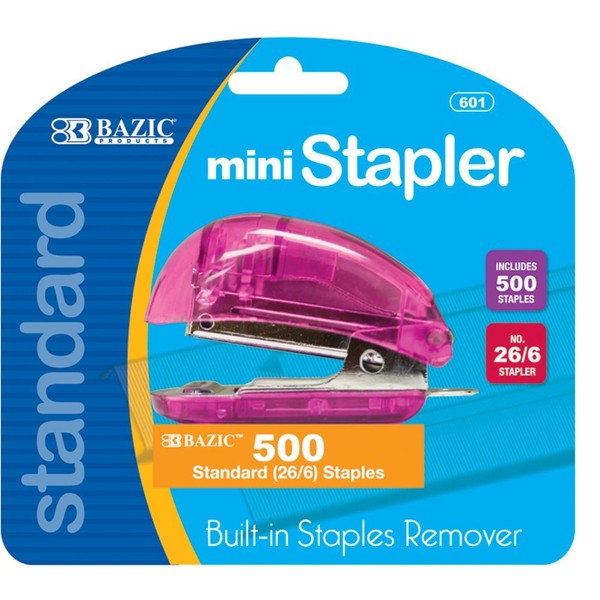 BAZIC Mini Standard (26/6) Stapler w/ 500 Ct. Staples