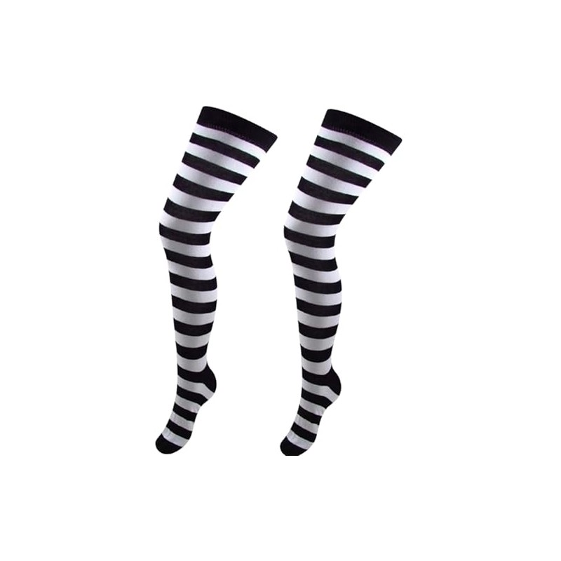 BB Accessories Black & White Striped Over The Knee Cotton Socks Stripe Size 4-5.5