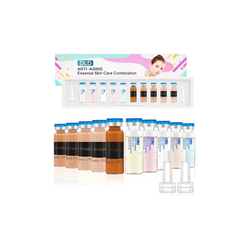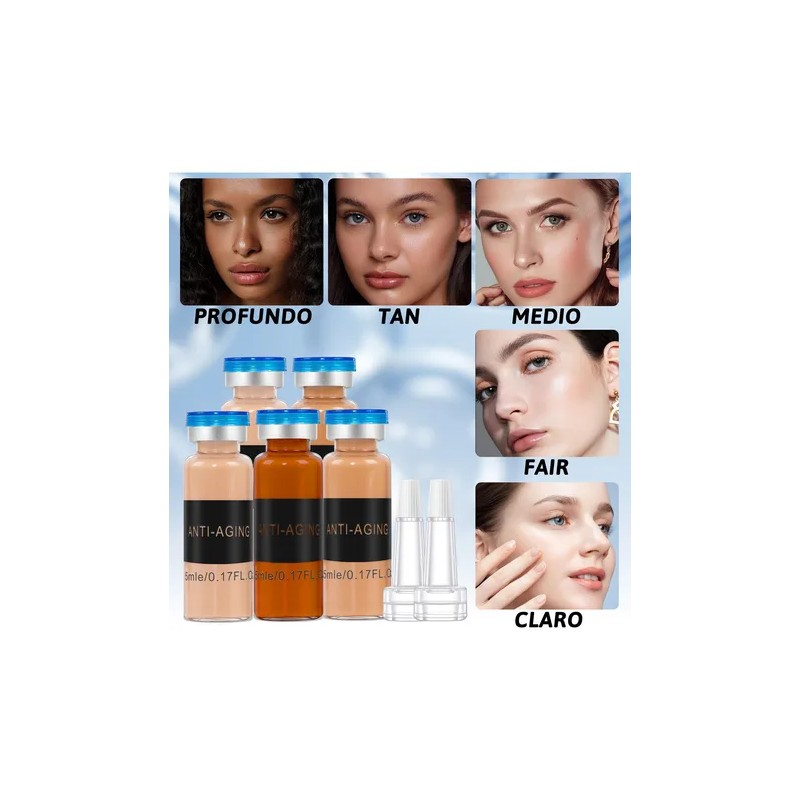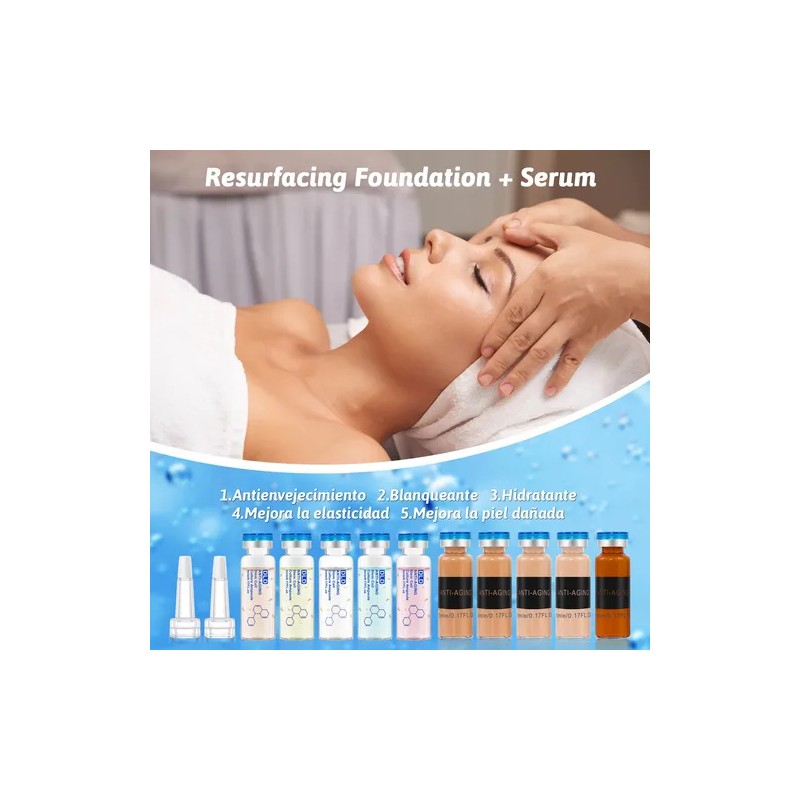 Kit de inicio BB Face Glow con suero pigmentado para el cuidado facial, kit de cuidado facial con suero pigmentado antienvejecimiento para microagujas, 10 frascos de 5 ml de ampolla de ácido hialurónico y base de maquillaje.