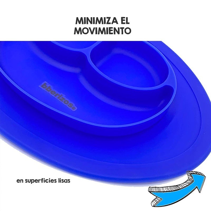 Bberizos| Plato Antideslizante Cuchara Suave Encías Set Alimentación de Silicona para Bebe Infantil con Divisiones para Niños Grado Alimenticio para Papillas Alimentos Sólidos Snakcs Sin BPA Sin PVC (Blue)