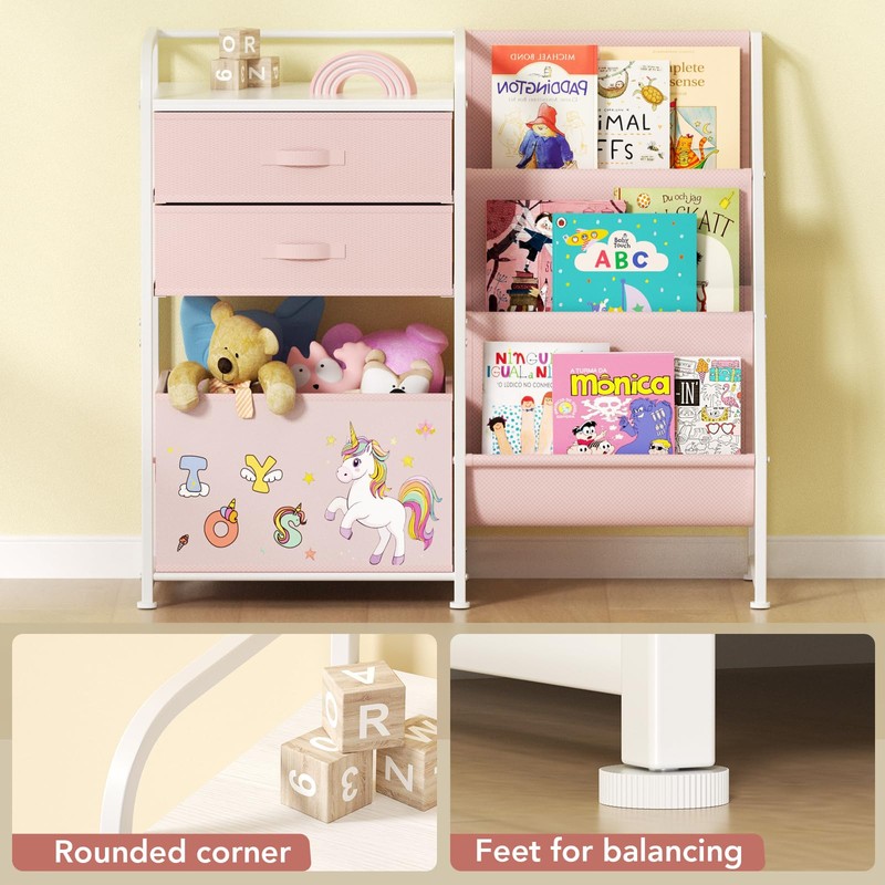 - [Sturdy Kids Bookcase]Reinforced Boards & Safe Design! Heavy-duty toy and book storage for kids outlasts flimsy PVC organizers. Rounded edges meet child safety standards