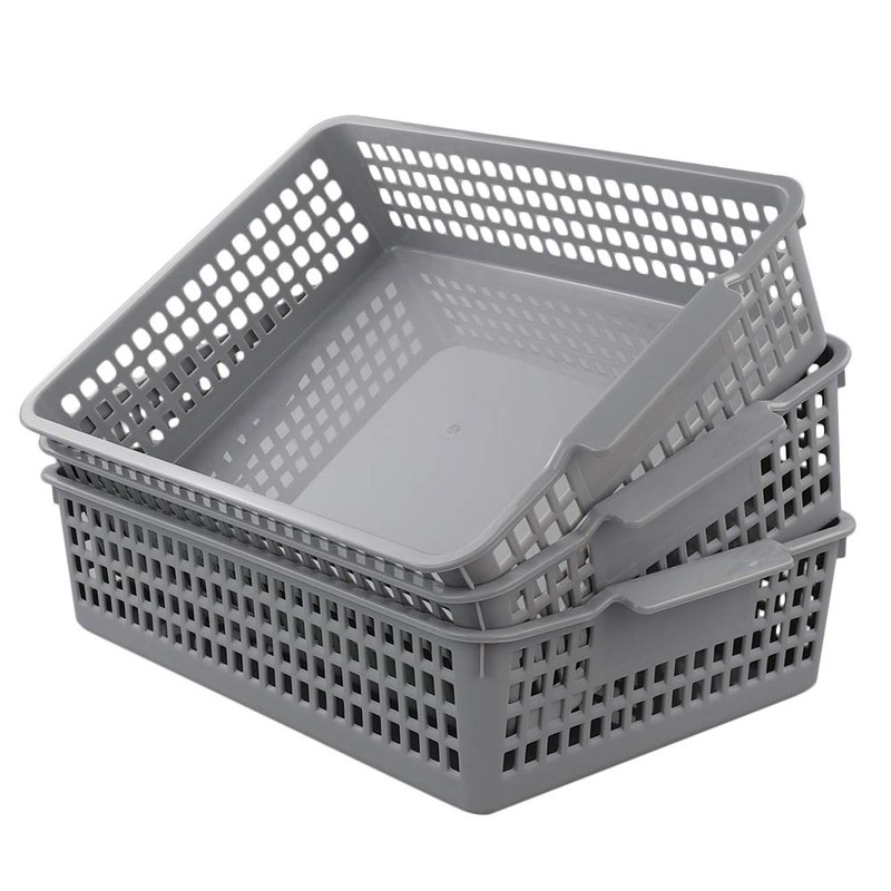 Bblina A4 Plastic Storage Basket, 3-Pack Shallow Storage Trays, Grey
